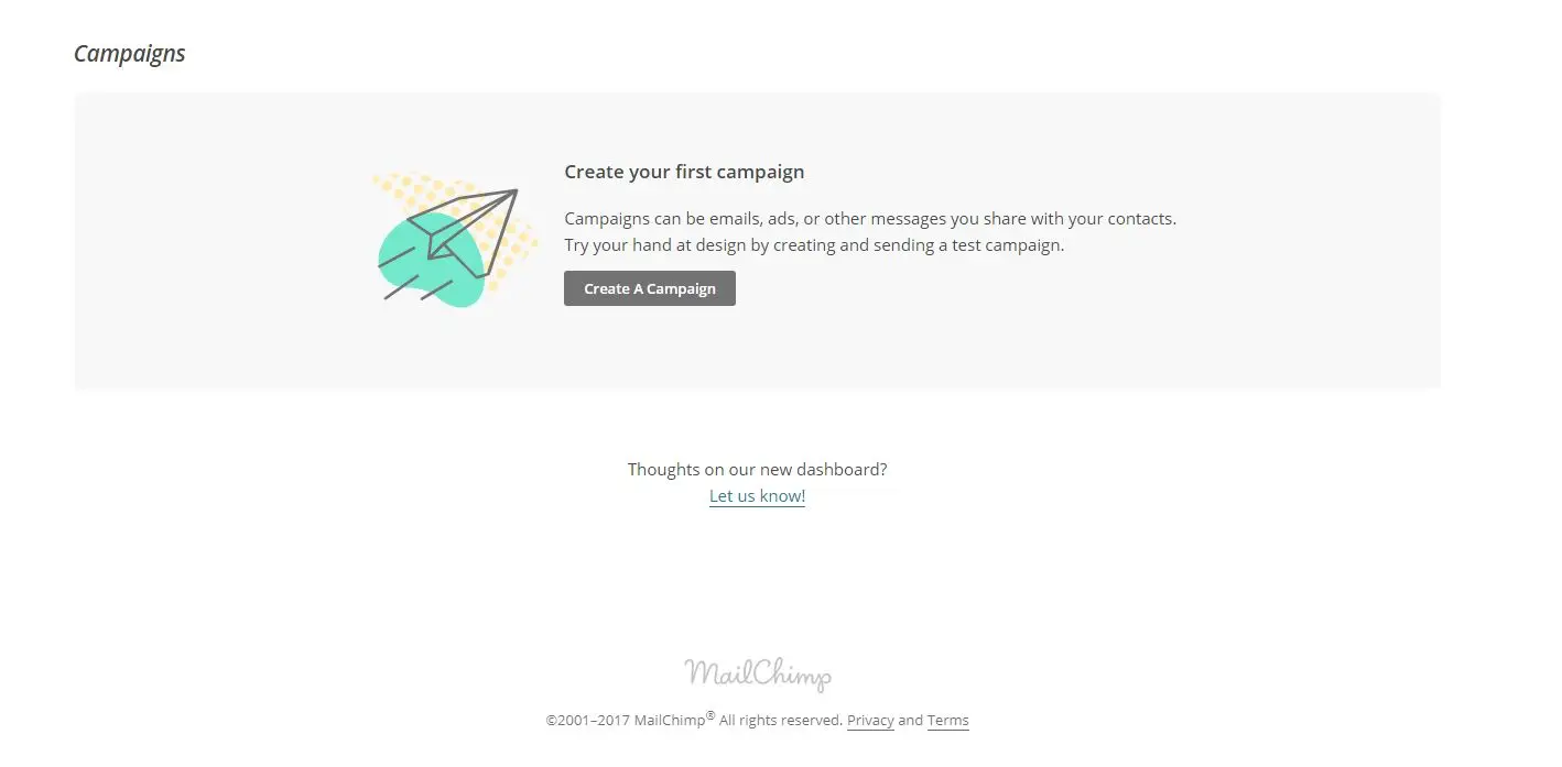 5. Para crear una campaña de email marketing, volvemos a la primera pestaña Campaigns en el panel de control y hacemos clic en create campaign. Nos aparecerán cuatro tipos: