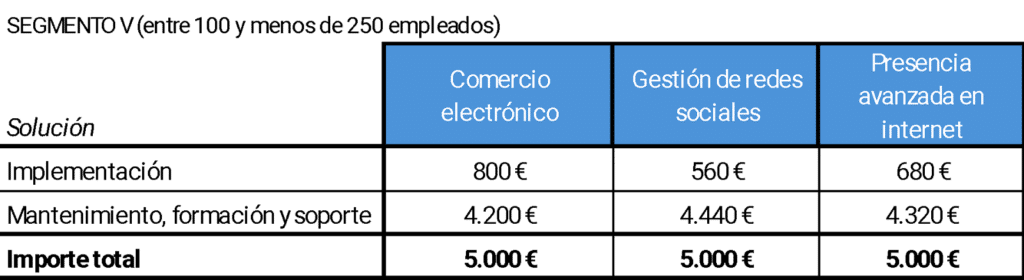 e) SEGMENTO V (entre 100 y menos de 250 empleados)