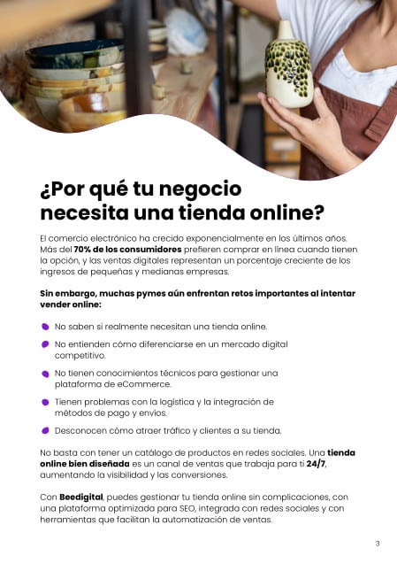 Conoce cómo Beedigital puede ayudarte a lanzar o mejorar tu tienda con una plataforma integral, soporte continuo y soluciones adaptadas a tu negocio.
