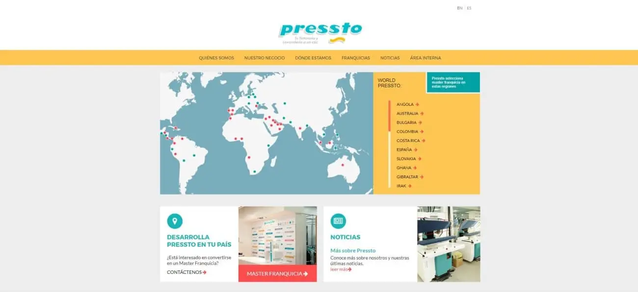 Cerrando la presencia española en el ranking, encontramos a Pressto, concretamente en el puesto 98. Esta franquicia de servicios de tintorería y lavandería está presente en 24 países de los cinco continentes, con más de 538 tintorerías en todo el mundo.
