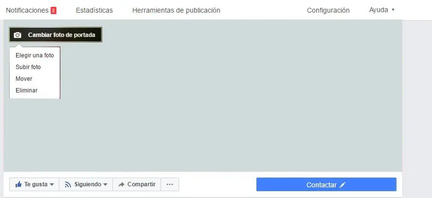 2. Para cambiar las imágenes de perfil o de cabecera, basta con que sitúes el ratón encima la cámara que aparece encima de ellas y cliques es “Cambiar foto”. En la nueva ventana podrás elegir entre las fotos que ya tienes subidas o cargar una nueva desde tu dispositivo.
